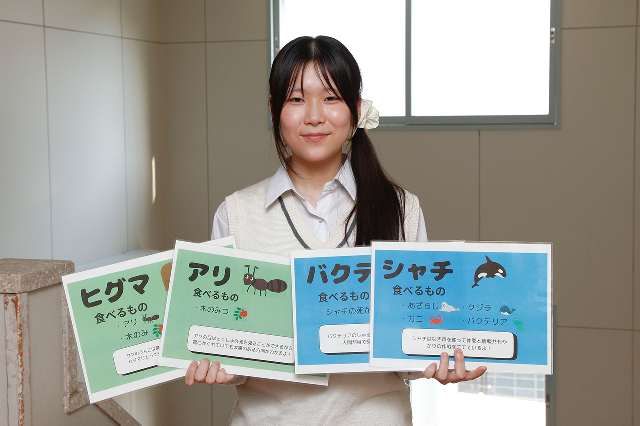 小野寺さん 高校1年生では知床の歴史や生態系の概要を、高校2年生ではそれらをさらに深く学びました。今はこれまで学んだことを他の人に伝えることに取り組んでいます。